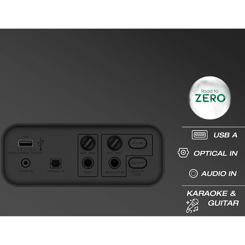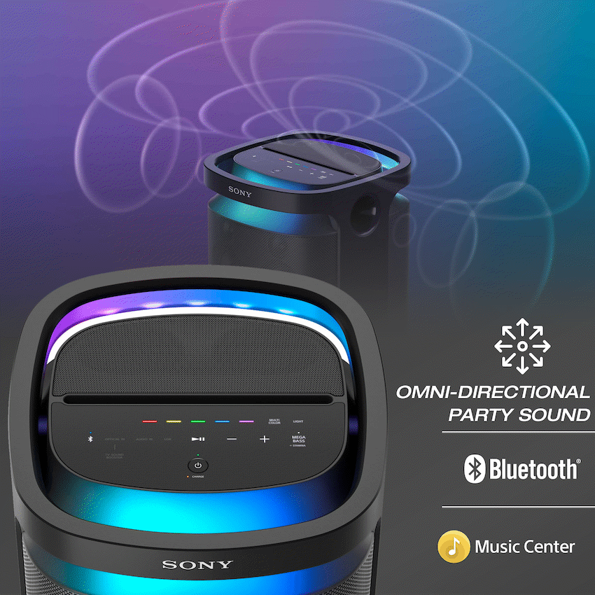 • It produces Omnidirectional Party Sound through six tweeters, dedicated stereo drivers, and an X-Balanced Speaker Unit with Jet Bass Booster for clear audio and deep bass.