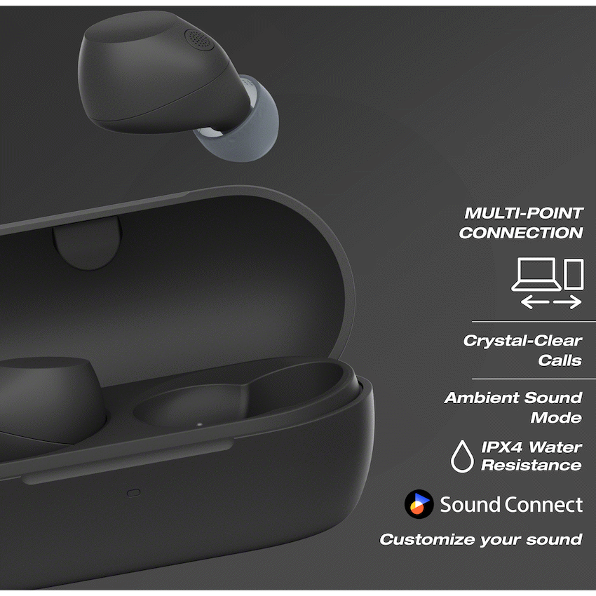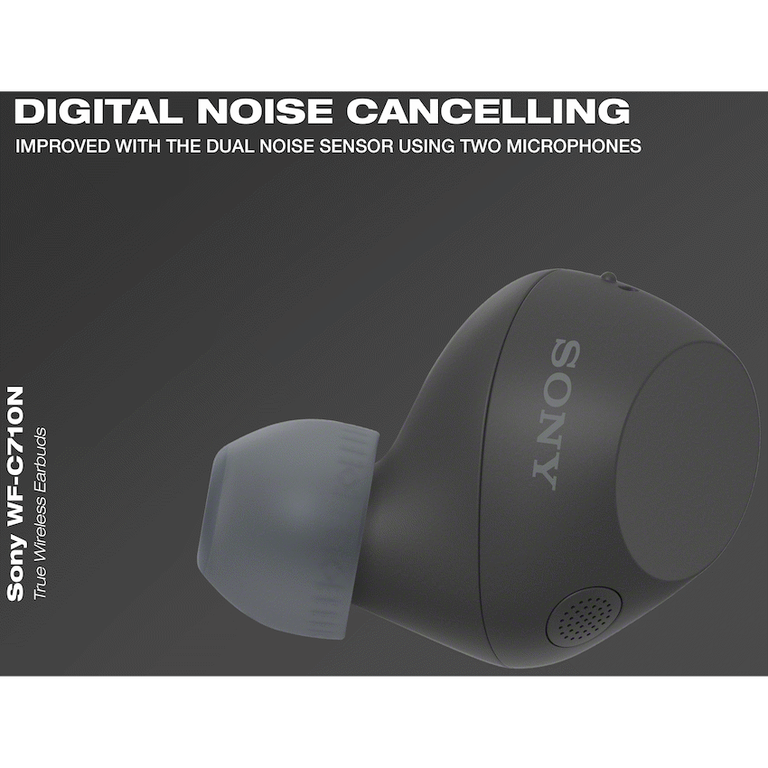 WF-C710N Wireless Noise Canceling Earbuds are the ultimate everyday audio essential with optimal noise canceling abilities.Enjoy all-day comfort with up to 8.5 hours on headphones and up to 21.5 hours in the case.1Crystal-clear calls with voice pickup that utilizes AI technology.Enjoy high quality sound with Sony’s unique 5 mm driver and Digital Sound Enhancement Engine processing (DSEE).Choose between four timeless colors including Glass Blue, Pink, White, and Black.6Enjoy more of your music with Advanced Noise Canceling and Dual Noise Sensor technology.Stay connected to your environment with Ambient Sound Mode through dual mics.Adjust your ambient sound in 20 levels or use the Focus on Voice setting to chat without removing your headphones through Sony | Sound Connect App.3Customize your sound with presets or create your own using the EQ Custom feature in the Sony ? Sound Connect app.3Enjoy your music in an effortless way with simple taps as a shortcut to your music.Pair with two compatible Bluetooth(R) devices simultaneously using Multipoint Connection, automatically switch between devices when it’s convenient for you