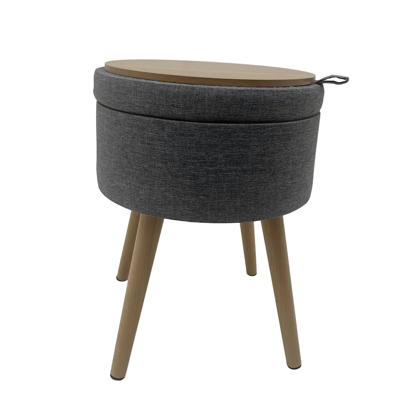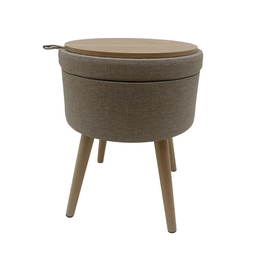 The Sophie Round Storage Stool with Wooden Legs is a practical promotional product offering dual functionality for corporate gifting programmes.