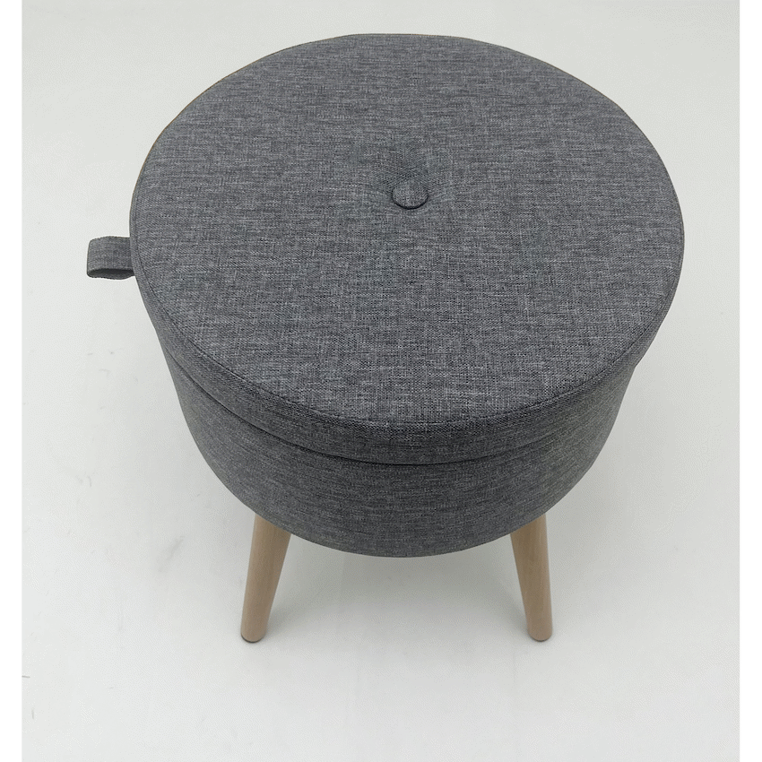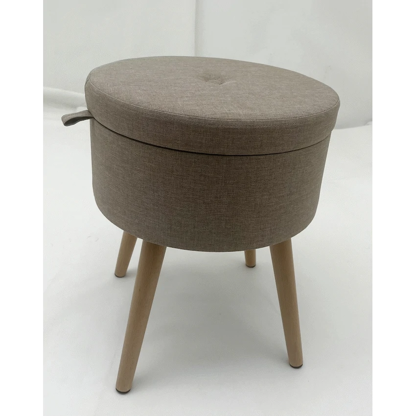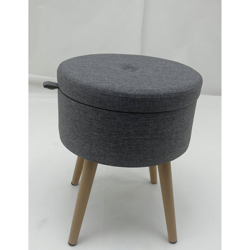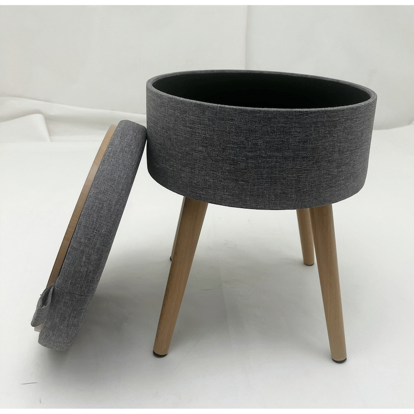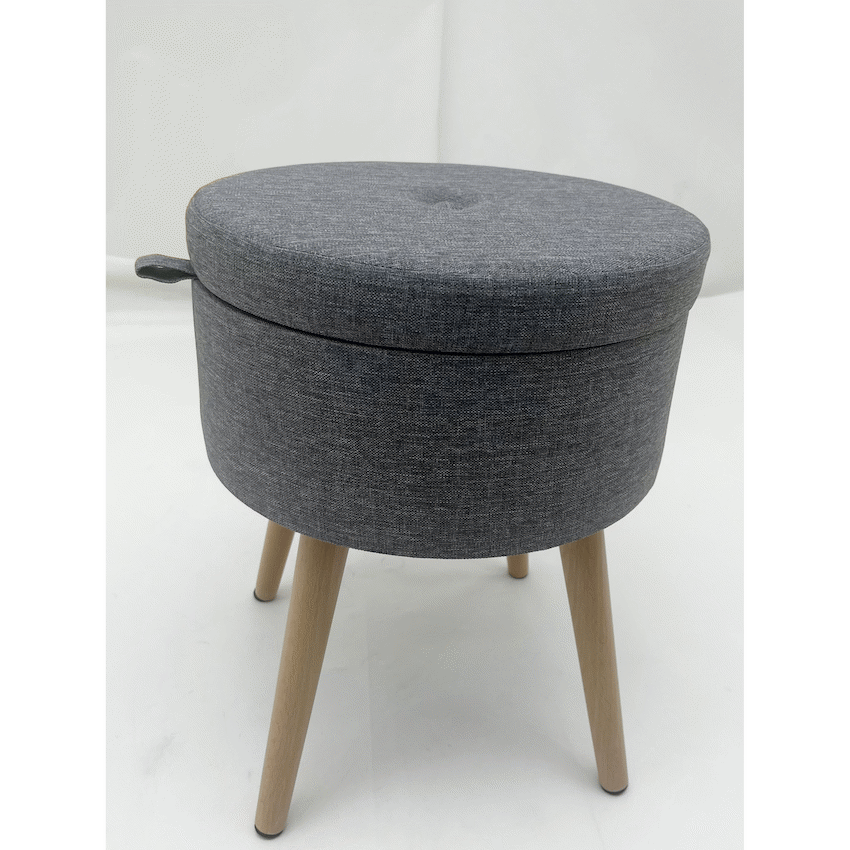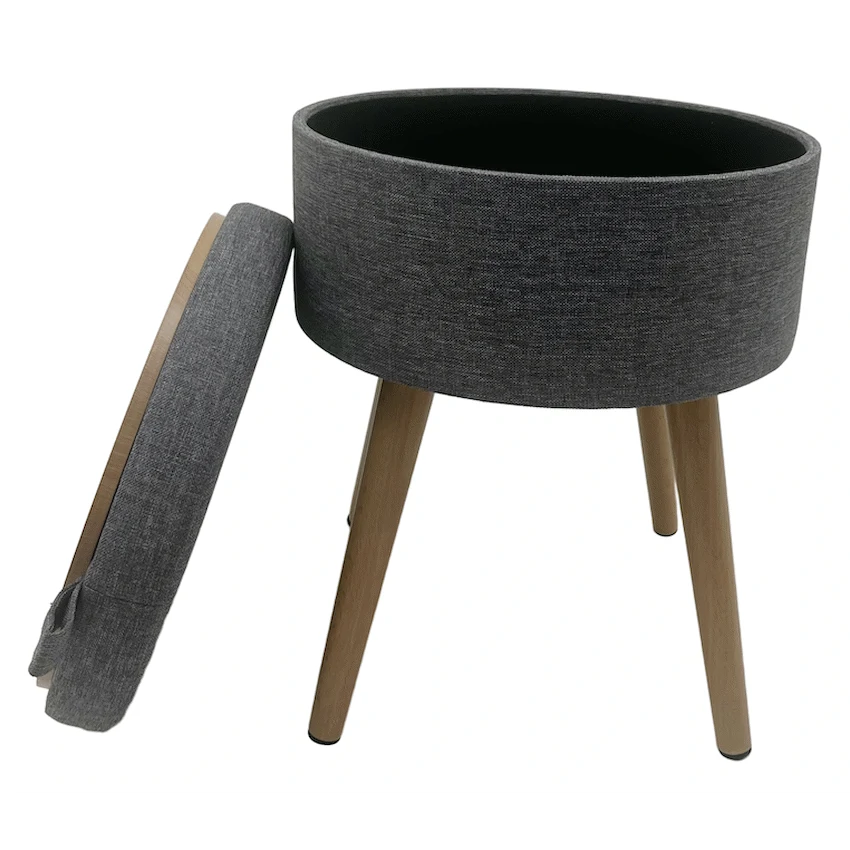 - This item serves as a comfortable stool for temporary seating and includes hidden storage space.