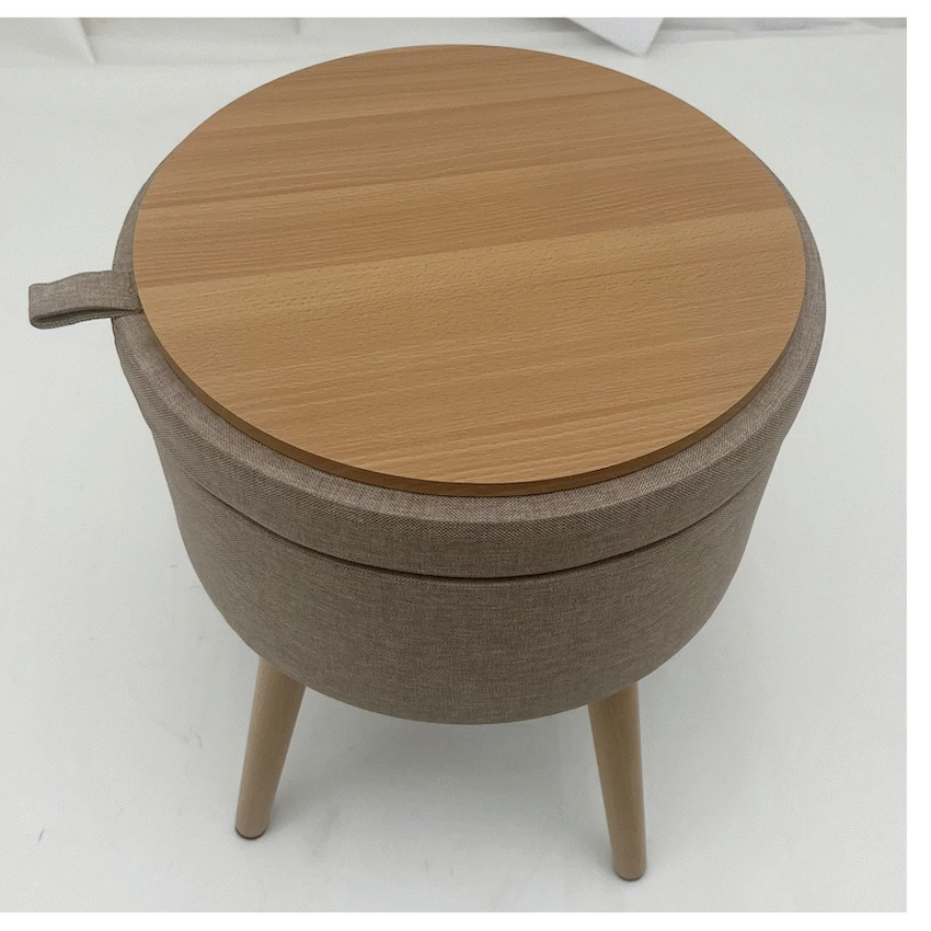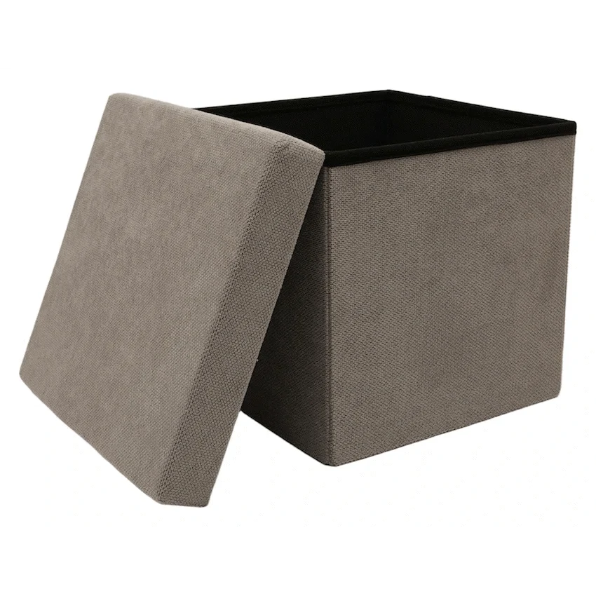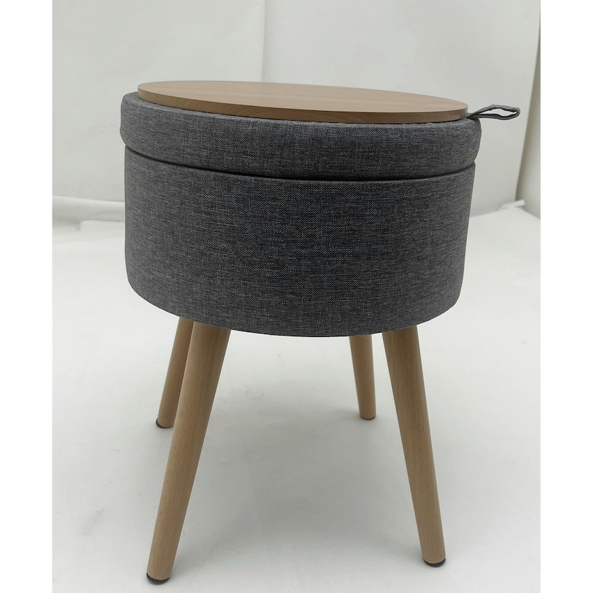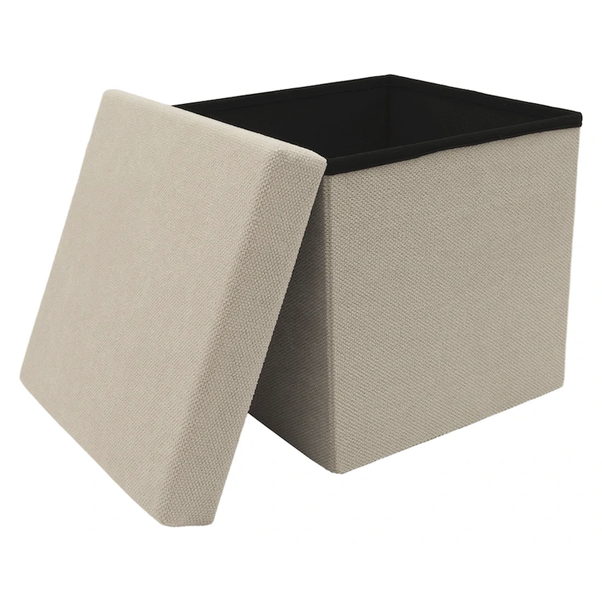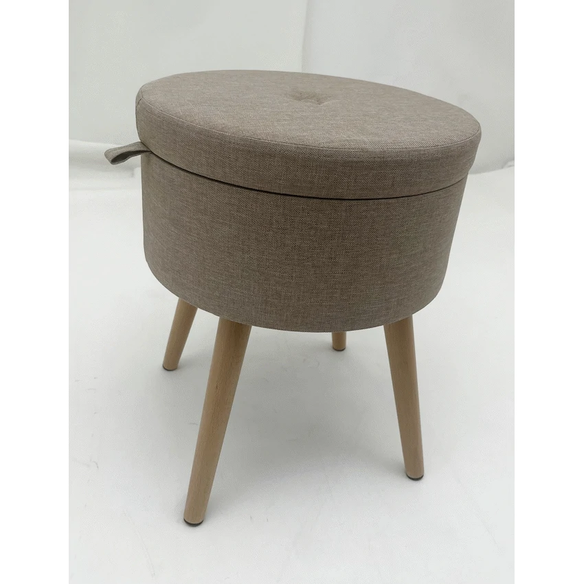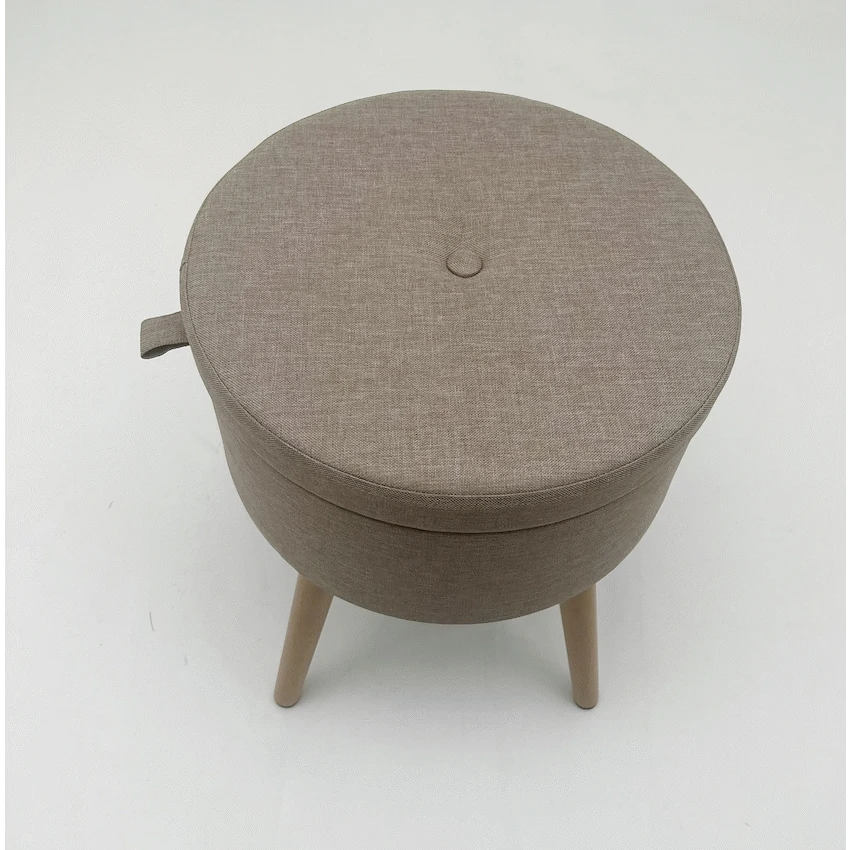- This item serves as a comfortable stool for temporary seating and includes hidden storage space.