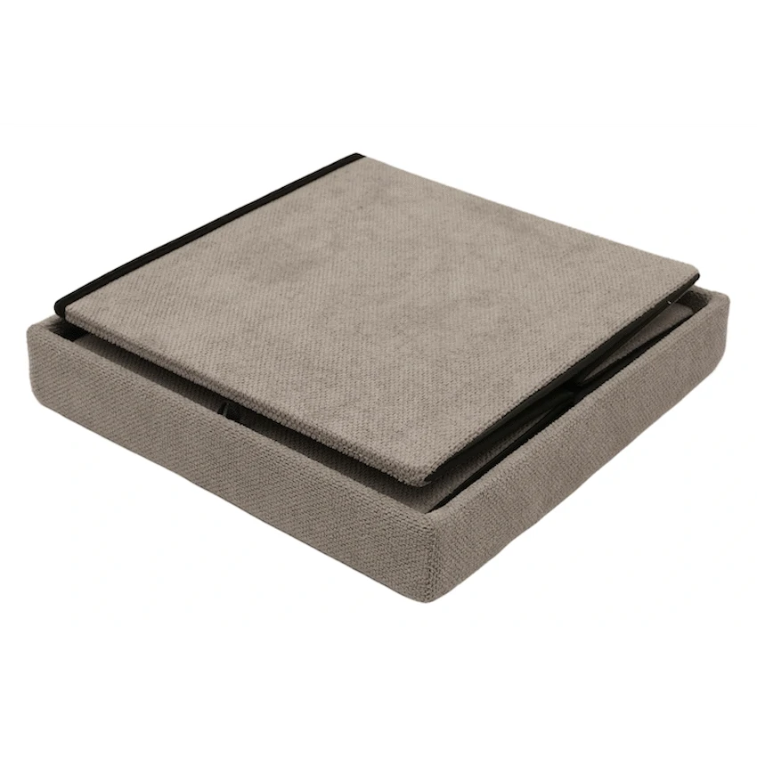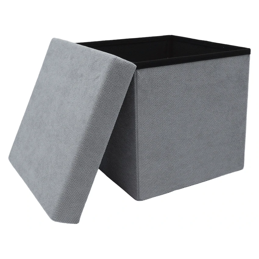 - It features a removable upholstered lid, often made from durable polyester fabric, which conceals the storage area.