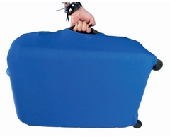 Protect your 28-inch luggage and make it easy to spot with this blue stretch cover. Made from a durable 92% polyester and 8% spandex blend, it has a secure zip closure. This cover is a good general promotional product.