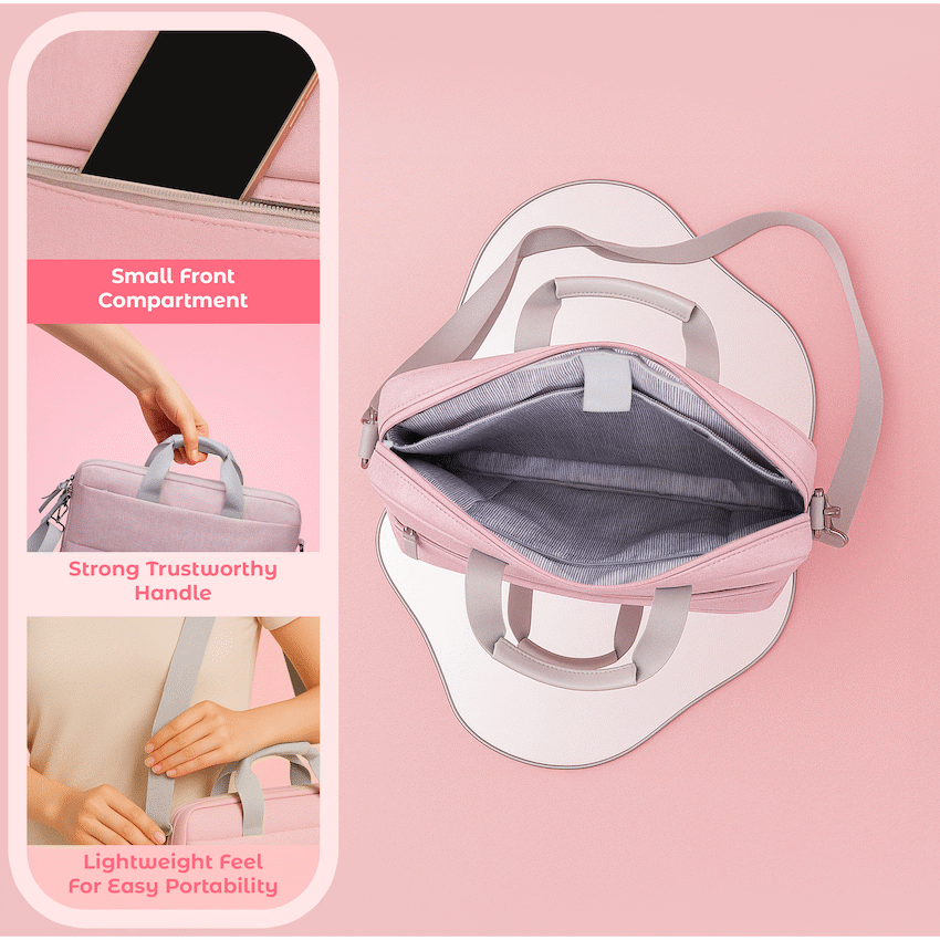 • This ladies’ laptop bag features a padded compartment designed to securely hold laptops up to 15.6 inches, offering protection against bumps and scratches.