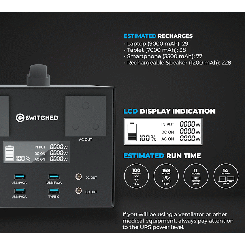 Switched 1000W Professional Portable UPS Power Station (1014Wh)