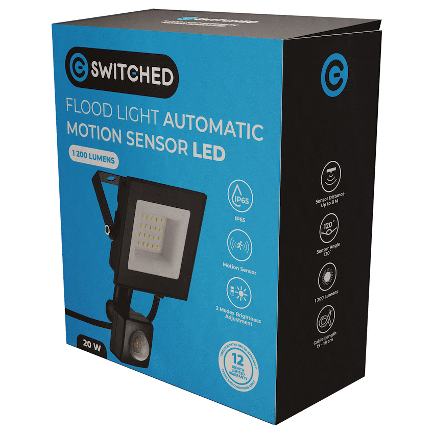 Improve property security and visibility with the Switched 20W LED Flood Light. It delivers 1600 lumens of cool white light and features an automatic PIR motion sensor with adjustable settings. A reliable lighting option from Switched.