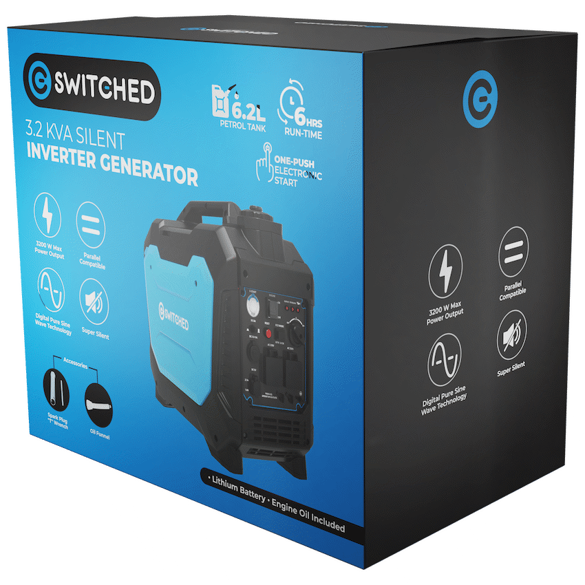 Get reliable portable power with the Switched 3.2KVA Silent Inverter Generator. It quietly supplies 3.2KVA for corporate events or general promotional activities, safely running essential and sensitive electronics. Trust Switched for your power needs.