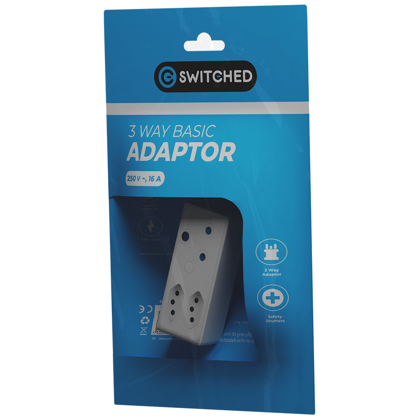 Simplify power access with this Switched 3-Way Adaptor. It allows connection of three devices simultaneously, offering both 3-pin and Euro-style sockets. Built-in safety shutters provide added security, making it a useful item for any South African setting.