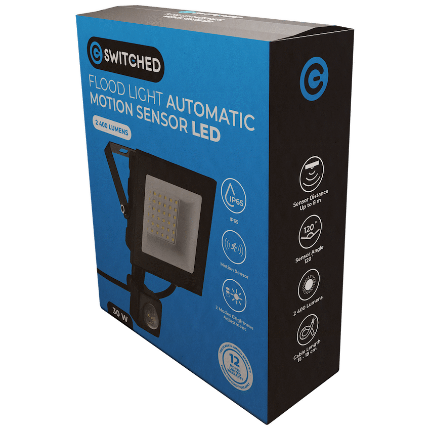 The Switched 30W LED motion sensor flood light offers dependable security for properties. It provides 2400 lumens of cool white light, activating instantly upon motion detection. With an IP65 waterproof rating, this light works well outdoors. Trust Switched for reliable lighting.