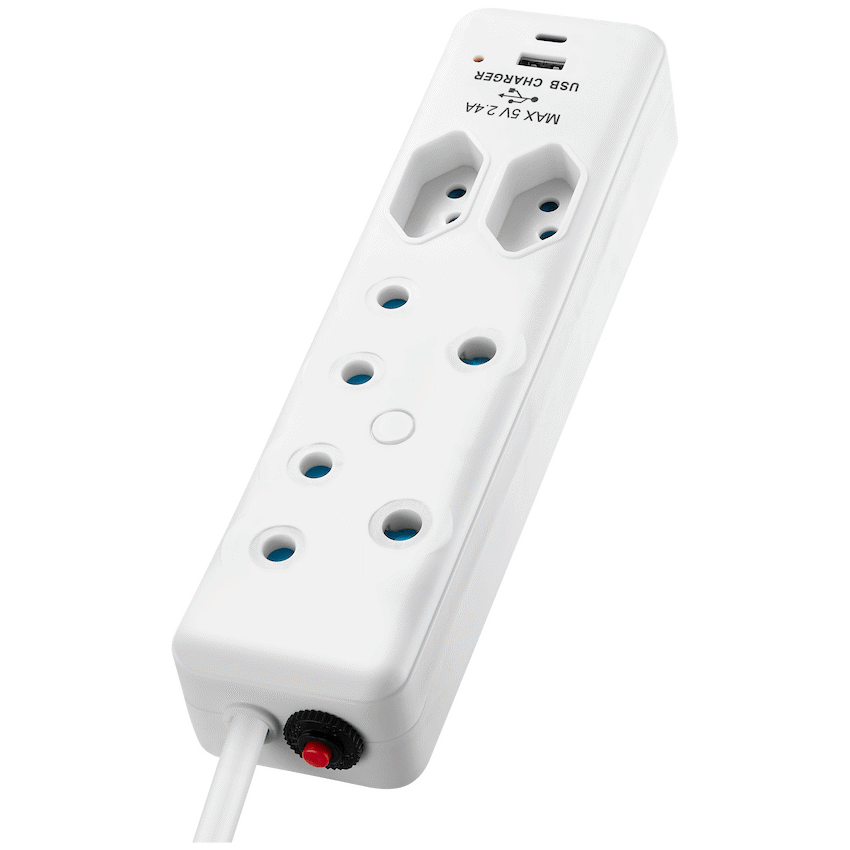 Switched 4-Way Extension Lead with 1x Type-C + 1x USB – 2m
