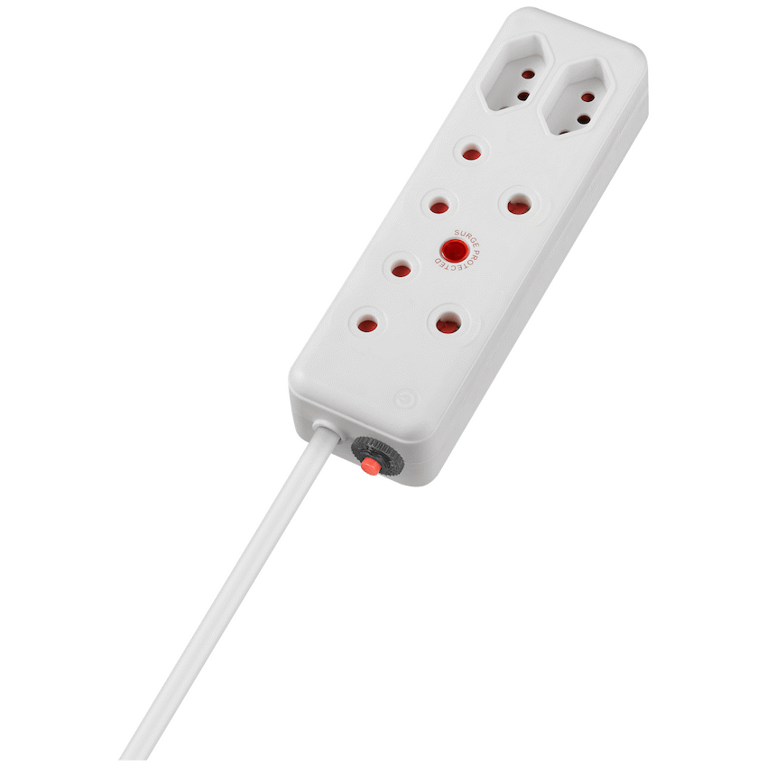 This Switched 4-Way Medium Surge Extension Lead protects devices from voltage spikes. It includes a 5-metre cable for flexible placement and offers 458 Joules of surge protection. With two 3-pin and two SANS 164-2 sockets, it is a dependable Switched item for homes and offices.
