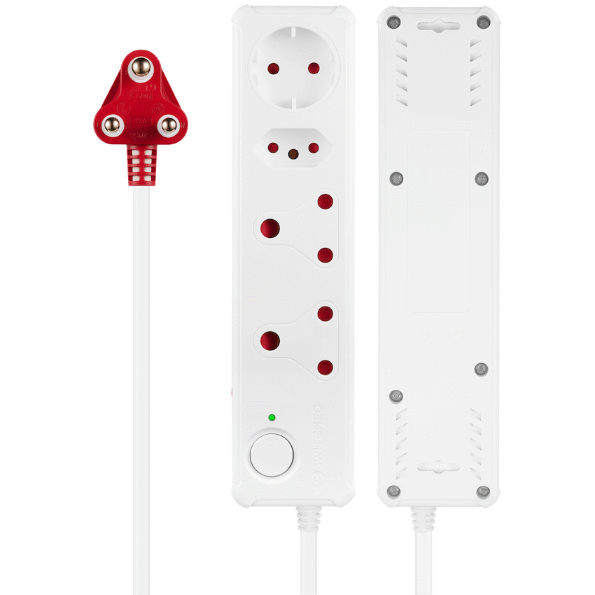 - It features four versatile sockets: two 16A 3-pin, one 16A SANS 164-2, and one 10A Schuko, all with built-in safety shutters.