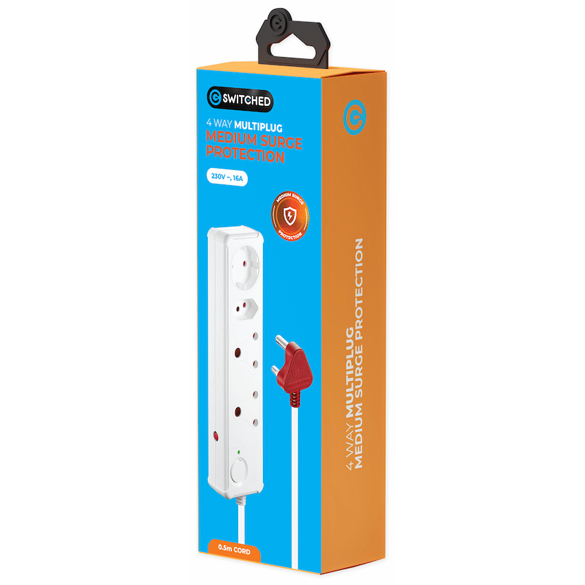 This Switched 4-Way Multiplug supplies dependable power and protection for your electronics. It has four sockets, including 16A 3-pin and SANS 164-2 types, with medium surge protection (375J) and overload protection. The 0.5m cord adds convenience, making it a practical Switched electrical item.