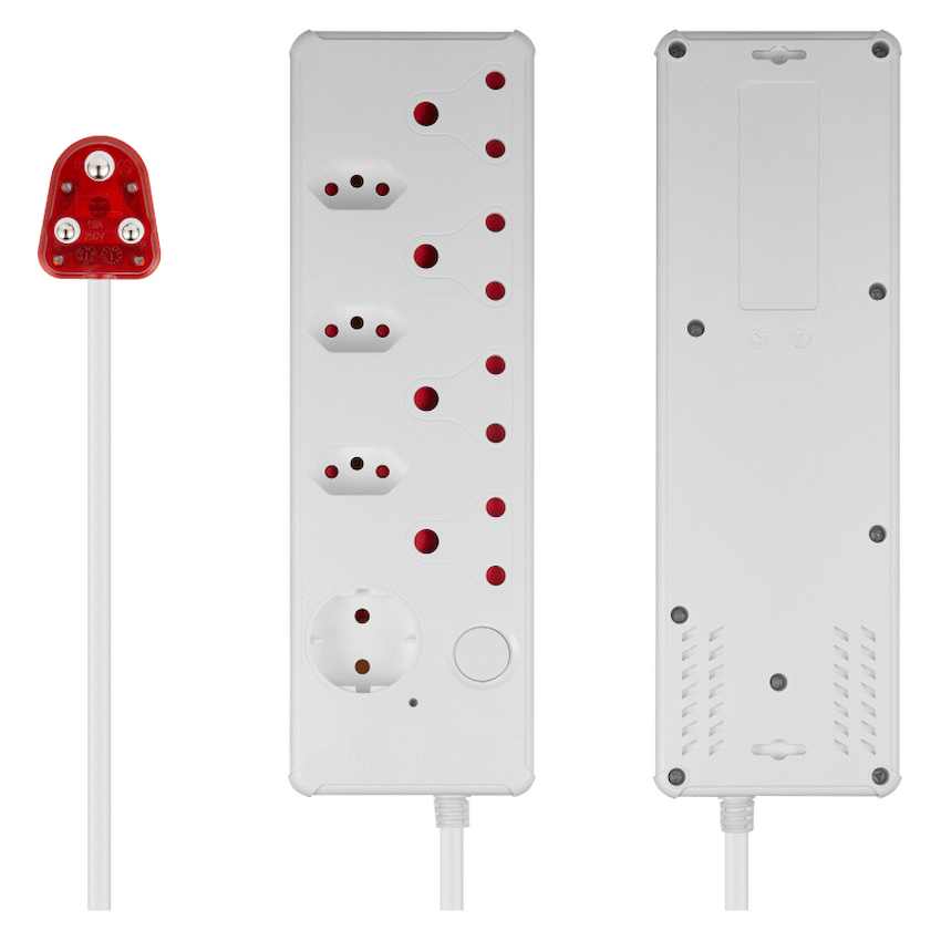 - Supports up to 8 devices with a mix of 3-pin, SANS 164-2, and Schuko sockets for broad compatibility.