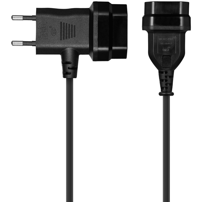Switched Easy Cable Extender 2-Pin Euro to T-Shape AC 2-Pin Euro Socket 2m – Black
