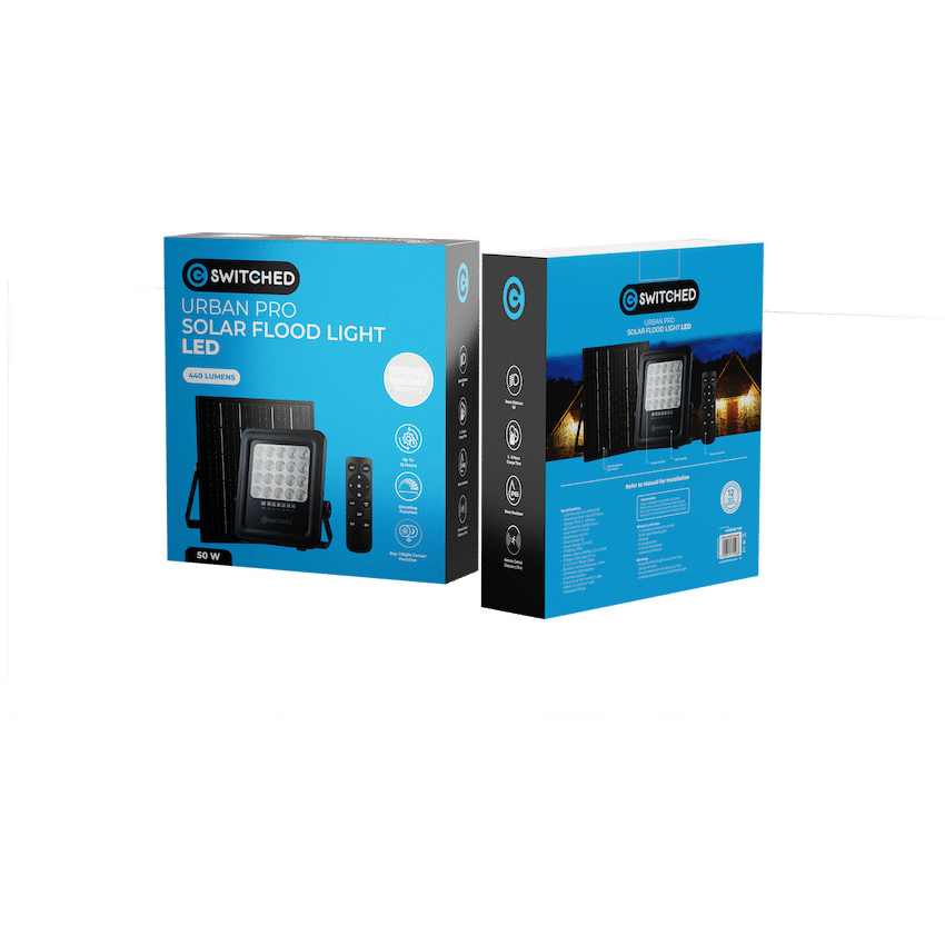 Reduce electricity costs with the Switched Urban Pro Series 50W Solar Floodlight. It provides reliable outdoor lighting, operating off-grid with a 6W solar panel and a 5000mAh battery for up to 12 hours of light. This Switched item offers practical illumination.