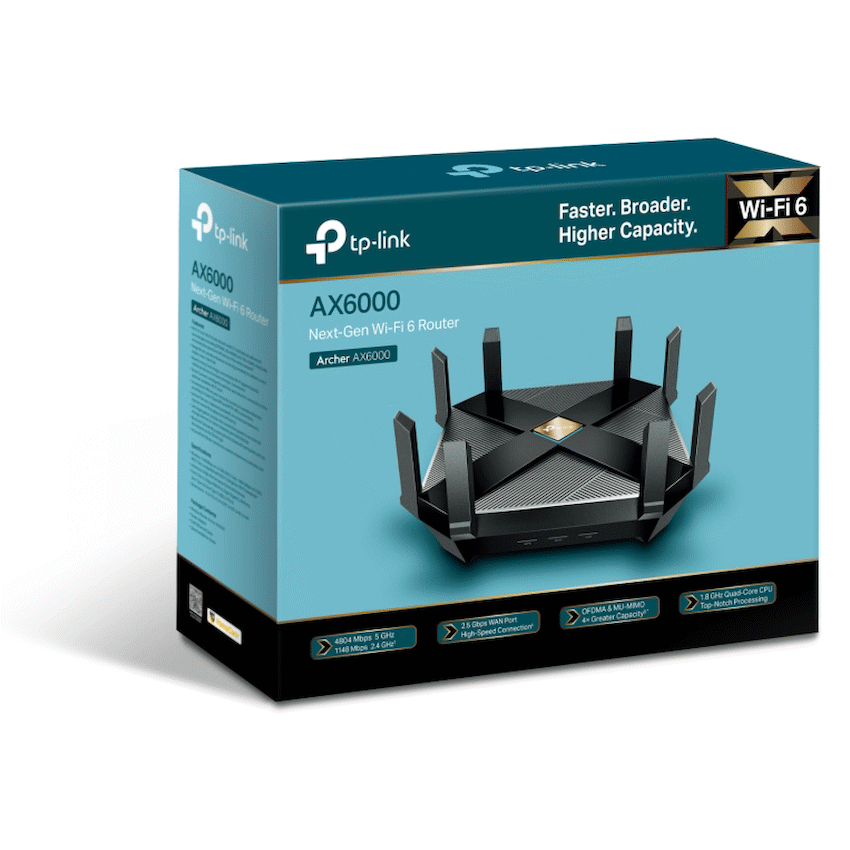 • This Wi-Fi 6 router delivers fast dual-band speeds up to 5952 Mbps, with 4804 Mbps on the 5 GHz band and 1148 Mbps on the 2.4 GHz band.