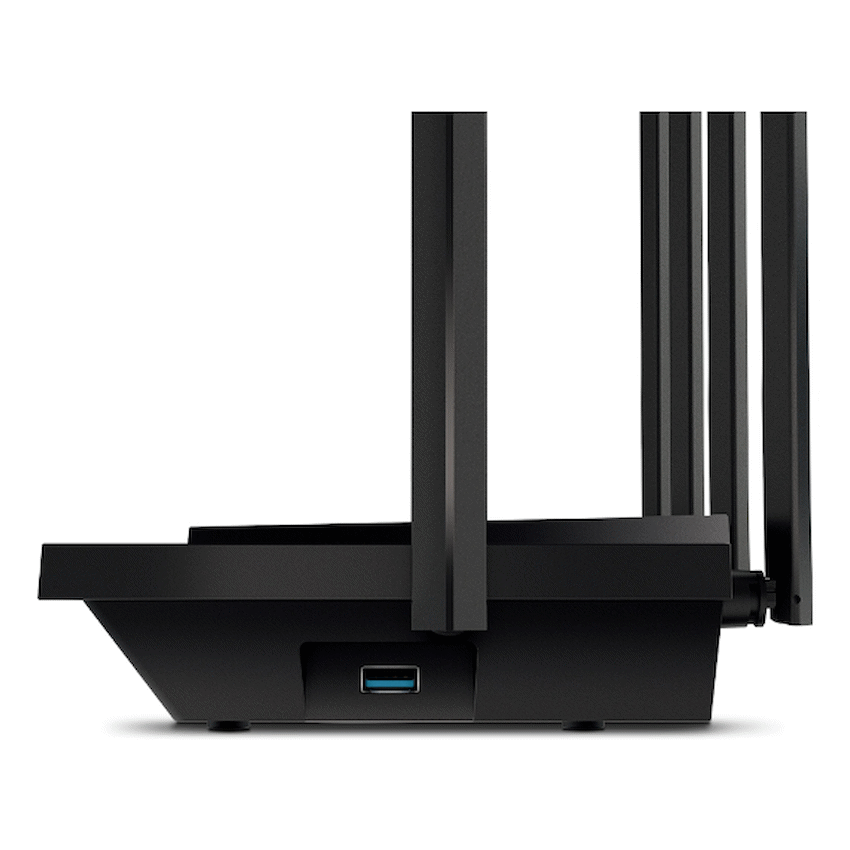 - The router uses the Wi-Fi 6 (802.11ax) standard for high-speed wireless connectivity.