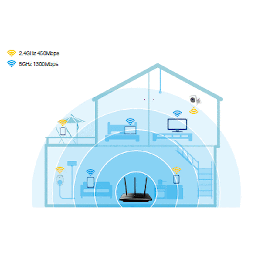 - This router offers dual-band Wi-Fi, with combined wireless speeds up to 1.75Gbps (1.3Gbps on 5GHz and 450Mbps on 2.4GHz).