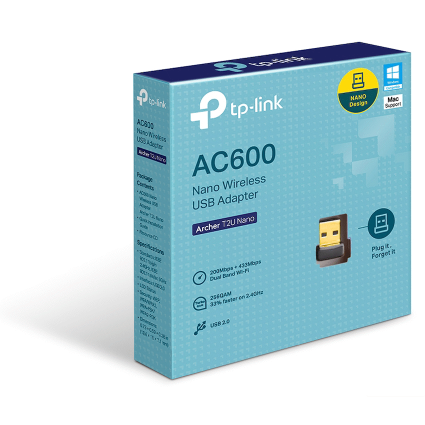 Get fast, dual-band Wi-Fi with the TP-Link Archer T2U Nano AC600 Wireless USB Adapter. Its compact nano design allows it to stay plugged in. Experience speeds up to 433Mbps on 5GHz for better network performance from TP-Link.