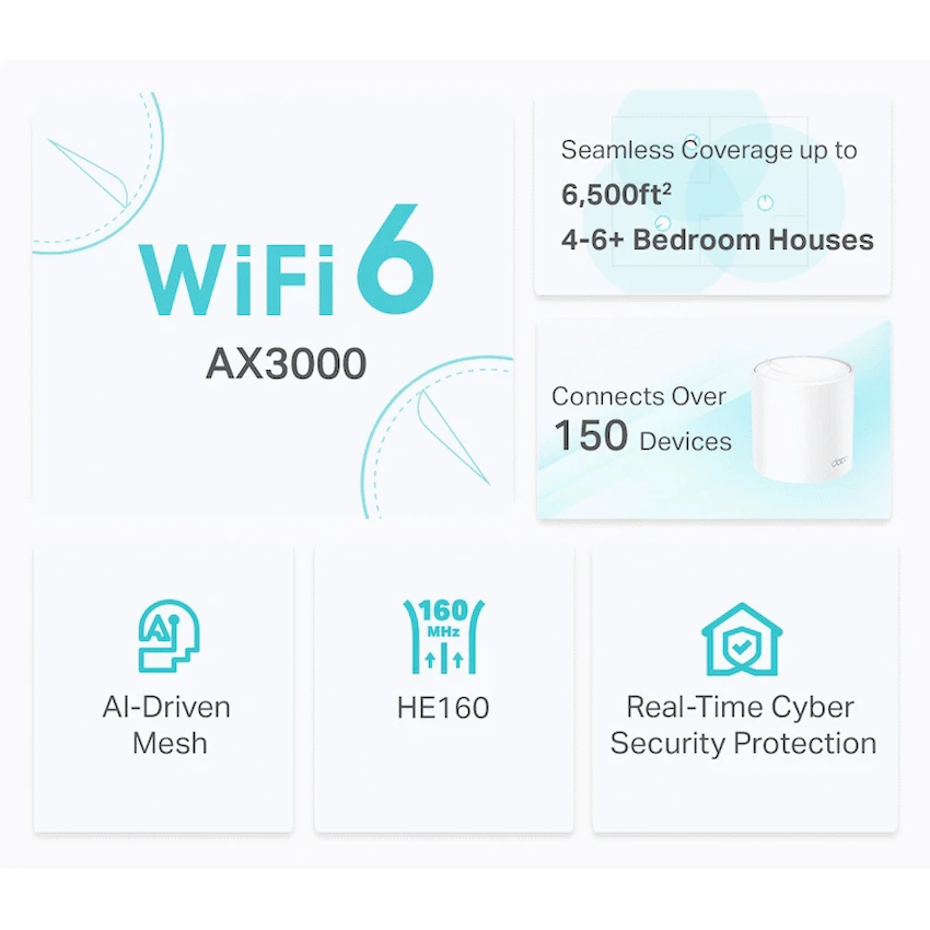 - This AX3000 Dual Band Wi-Fi 6 system delivers speeds up to 3.0 Gbps, with 2402 Mbps on 5 GHz and 574 Mbps on 2.4 GHz bands.