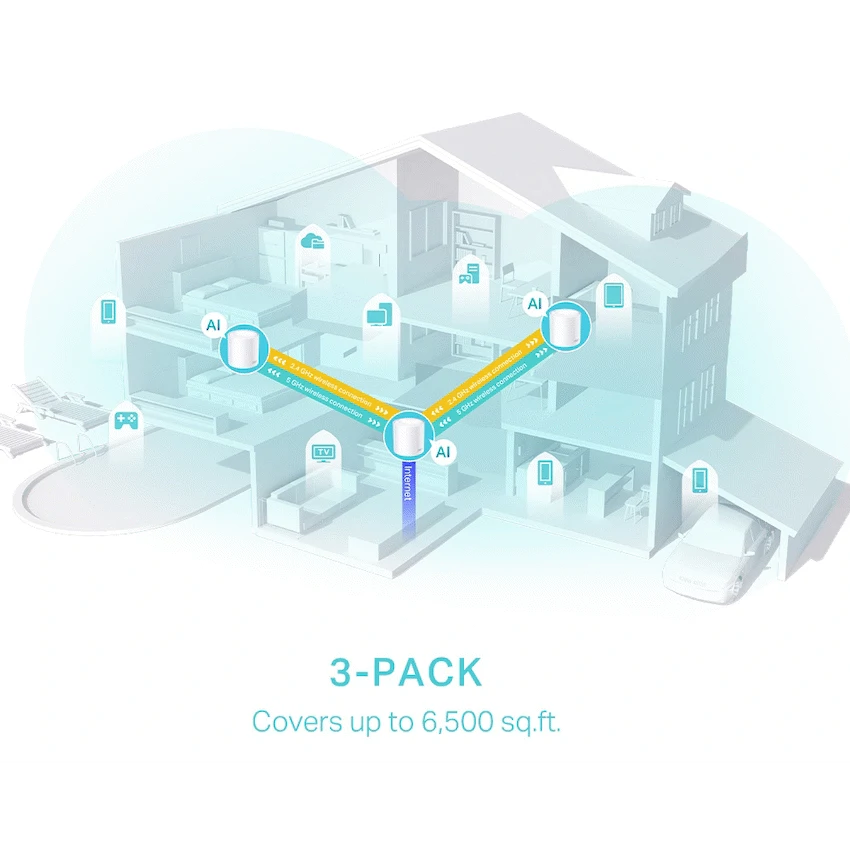 - The 3-pack provides extensive mesh Wi-Fi coverage for large homes or offices, building on the 4,500 ft² coverage of a 2-pack system.