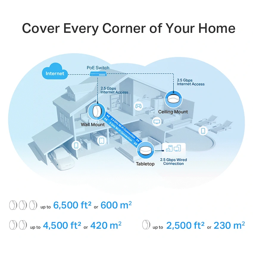 - Each unit includes two 2.5 Gbps wired ports for fast connections.