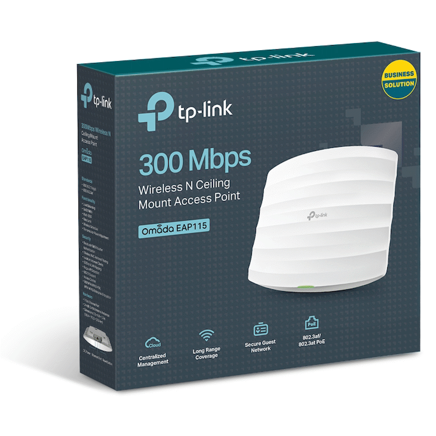 Dependably expand your business wireless network with the TP-Link EAP115. This 300Mbps Wireless N Wall Plate Access Point offers cloud centralised management through the Omada app and simple Power over Ethernet installation. The TP-Link EAP115 delivers reliable network extension.