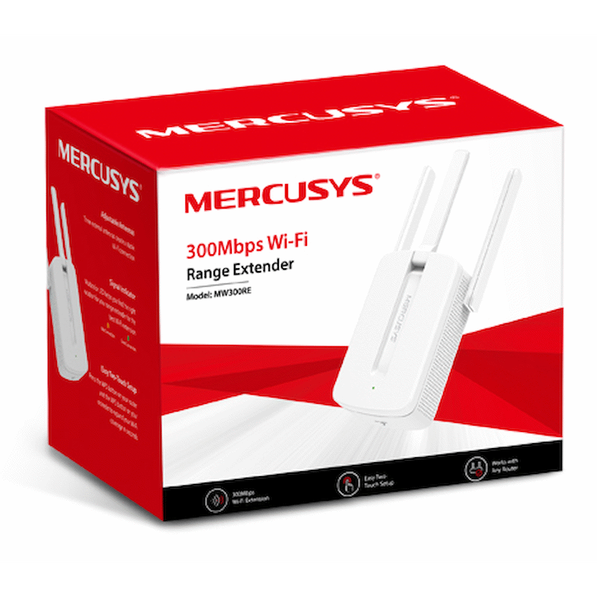 Improve your Wi-Fi signal coverage and eliminate dead zones with the Mercusys MW300RE. It extends wireless connectivity up to 300Mbps, supporting daily online activities. Three adjustable antennas provide stable connections. Simple WPS button setup makes the Mercusys MW300RE easy to install.