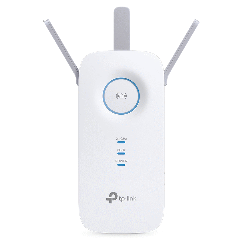 The TP-Link RE550 Wi-Fi Range Extender removes dead zones by boosting dual-band speeds up to 1900Mbps. Three external antennas provide wide, strong signal. This TP-Link extender makes sure you have reliable internet coverage.