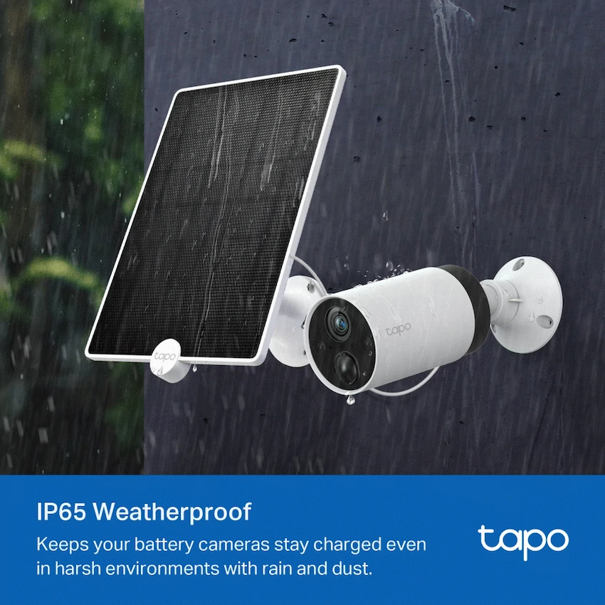 Power compatible Tapo smart security cameras reliably with the TP-Link Tapo A200 4.5W Solar Panel. It provides 4.5W power with an IP65 weatherproof design, making sure your outdoor Tapo devices stay active.