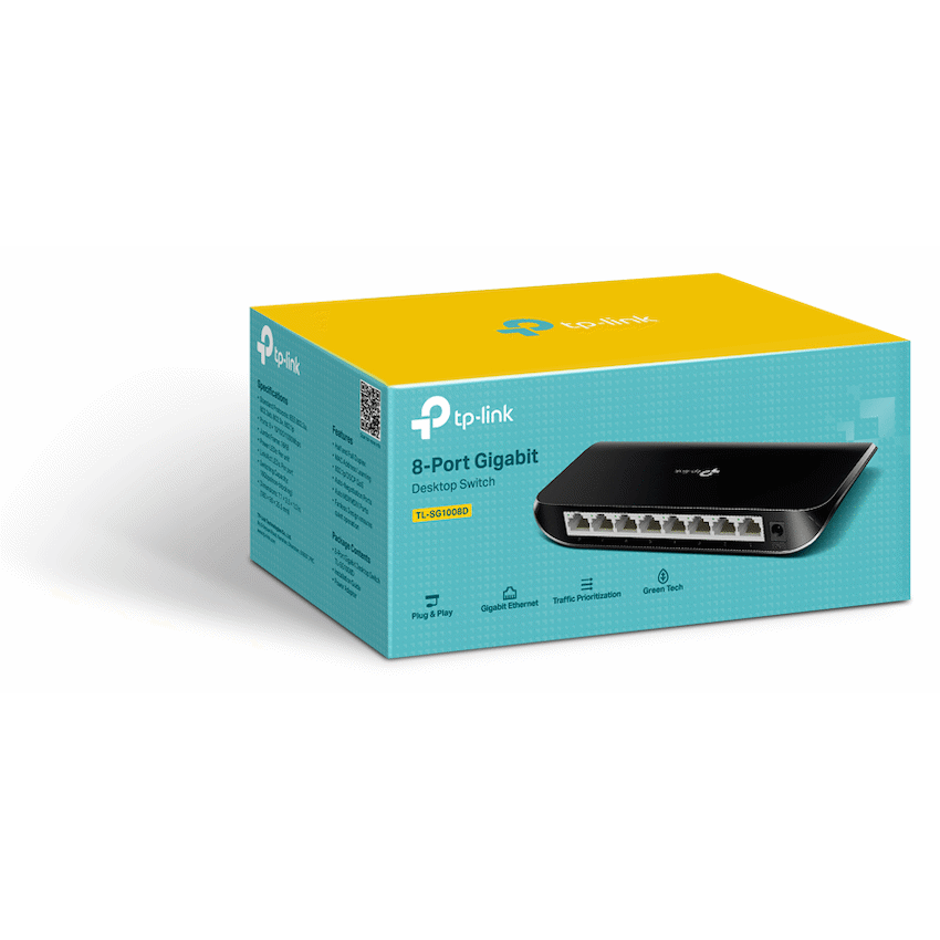 Improve your office network with the TP-Link TL-SG1008D 8-Port Gigabit Desktop Switch. It provides eight 10/100/1000Mbps ports for quick data transfer and uses Green Ethernet to save power. This plug-and-play switch delivers dependable TP-Link network connectivity.