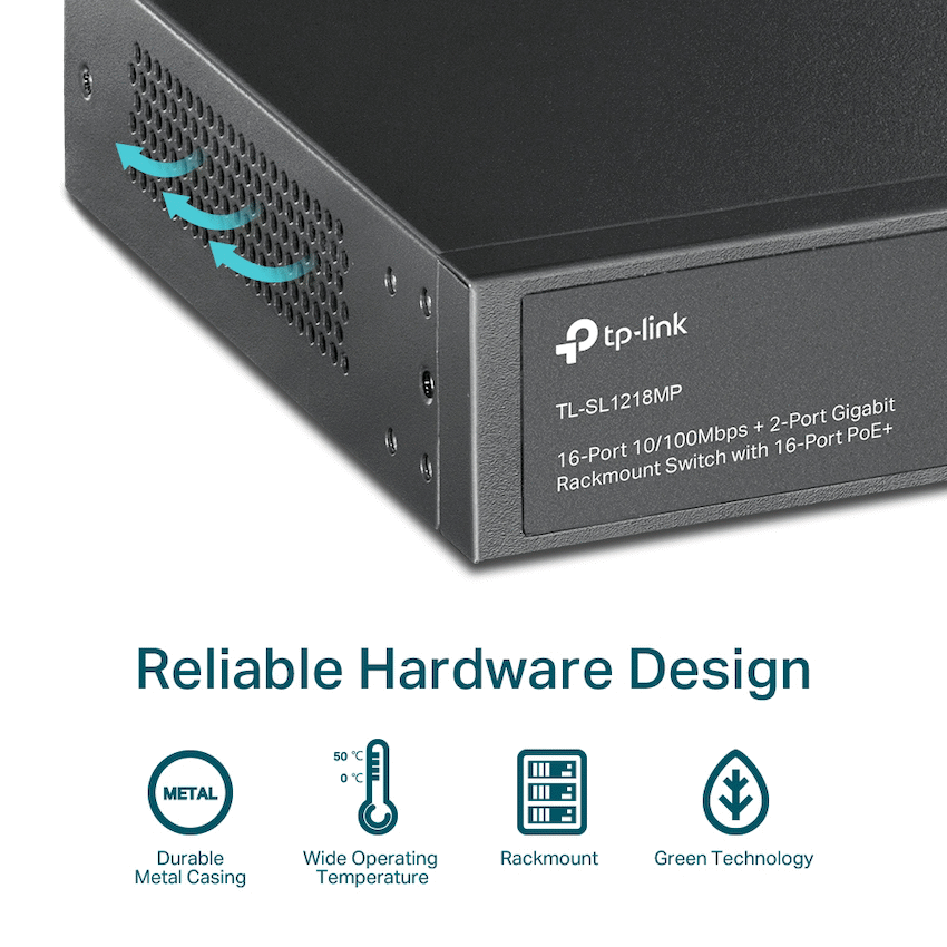 TP-Link TL-SL1218MP 16-Port 10/100Mbps + 2-Port Gigabit Rackmount Switch with 16-Port PoE+