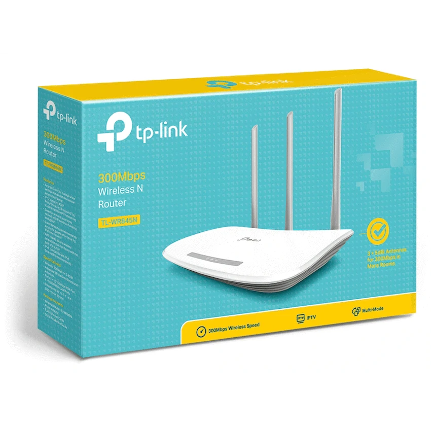 Provide reliable internet for your home or small office with the TP-Link TL-WR845N N300 Wi-Fi Router. It offers 300Mbps wireless N speed and three 5dBi antennas for wide coverage. TP-Link delivers this practical network solution.