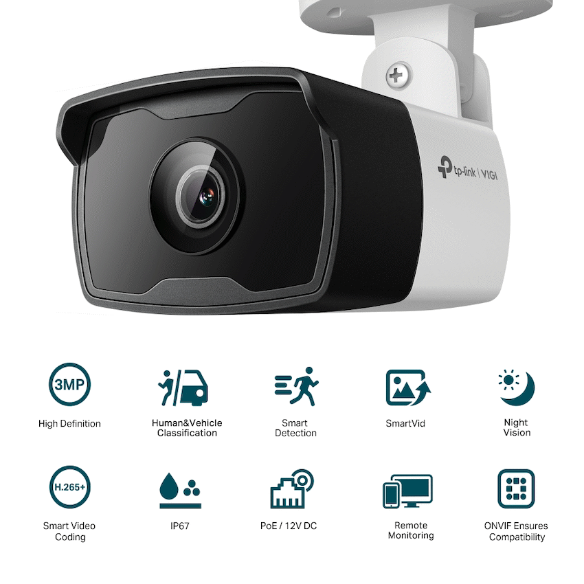 The TP-Link Vigi C330I camera provides dependable outdoor surveillance for businesses. It captures clear 3-megapixel images and uses smart detection to identify humans and vehicles. This camera delivers reliable security from TP-Link Vigi.
