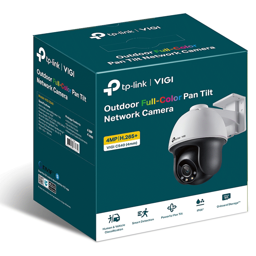 The TP-Link Vigi C540 camera provides dependable outdoor corporate security. It offers 4MP full-colour imaging day and night, alongside Pan Tilt with auto-tracking for wide area monitoring. This camera helps protect your property effectively.