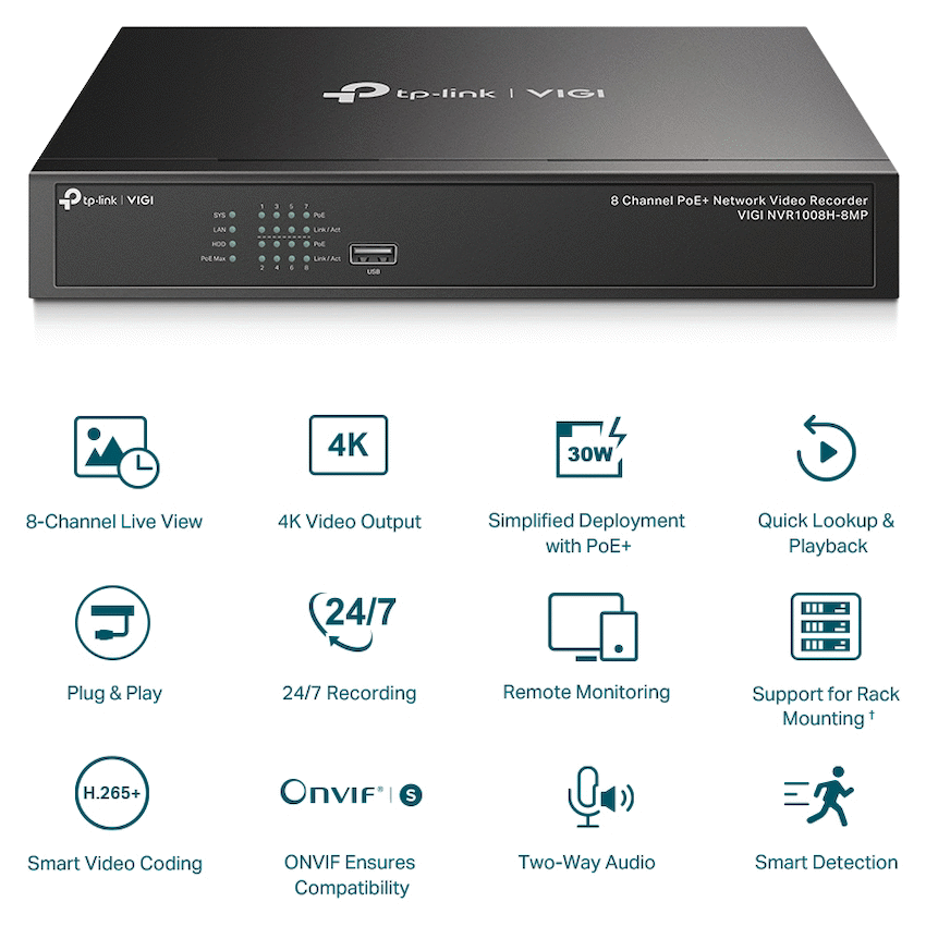 TP-Link Vigi NVR1008H-8MP 8 Channel PoE Network Video Recorder
