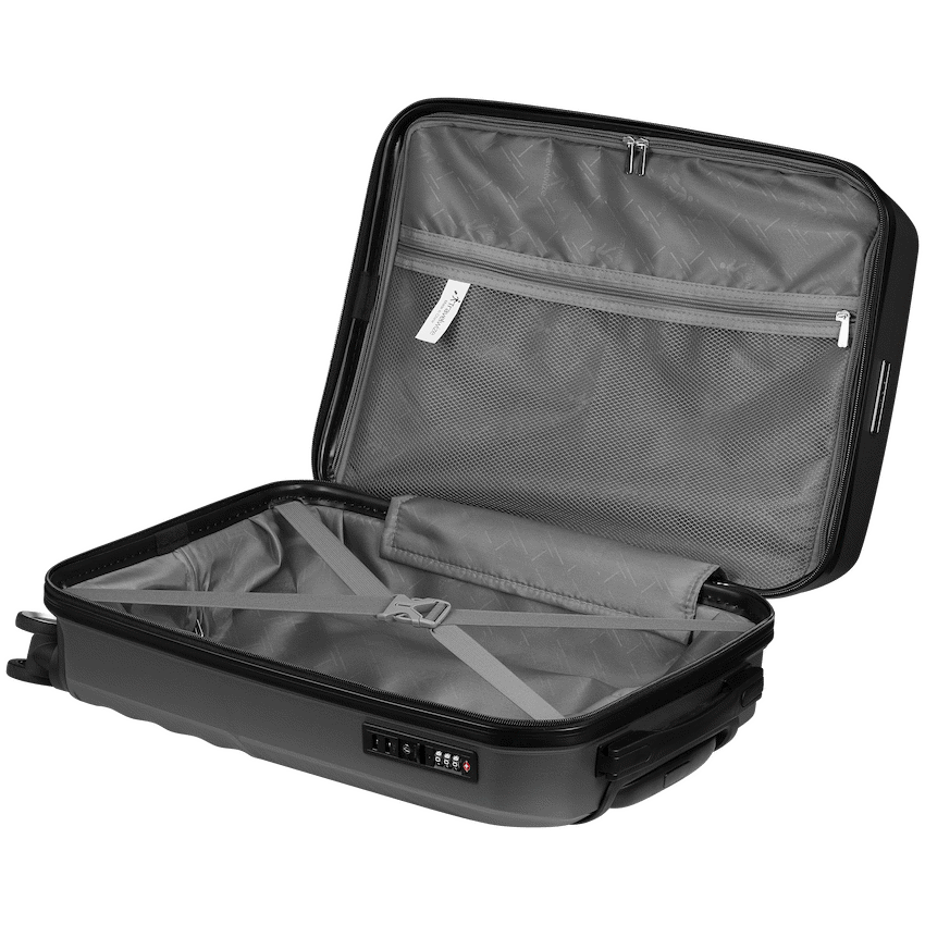 This Travelwize Quartz PP 76cm luggage offers durable and convenient travel. Made from hardwearing Polypropylene, it features four 360-degree spinning wheels for easy movement. A built-in combination lock helps secure your items, making it a reliable Travelwize choice.