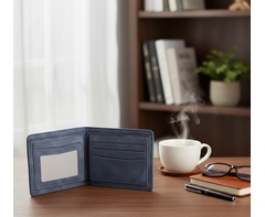 - The wallet includes six compartments for cards, one window compartment for a driver’s license, and a dedicated SIM card holder.