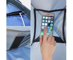This UV50 Face Protection Tent protects your face from the sun during outdoor activities. It is made from durable 190T Polyester and includes inner compartments with a phone holder. This tent is a practical item for general brand promotion.