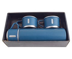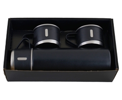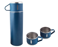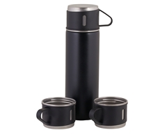 This vacuum flask set keeps beverages hot or cold with double-wall stainless steel insulation. It includes a 500ml flask and three 120ml mini mugs that fit as a lid, making it practical for sharing. This set is a useful item for general promotional campaigns.