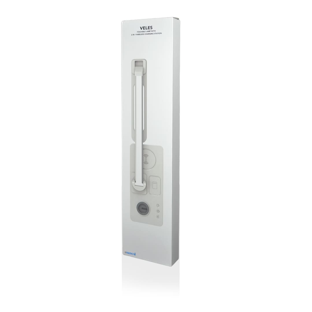 Offer a practical and modern item for general promotional activities with the @memorii Veles 3-in-1 wireless charger and desk lamp.