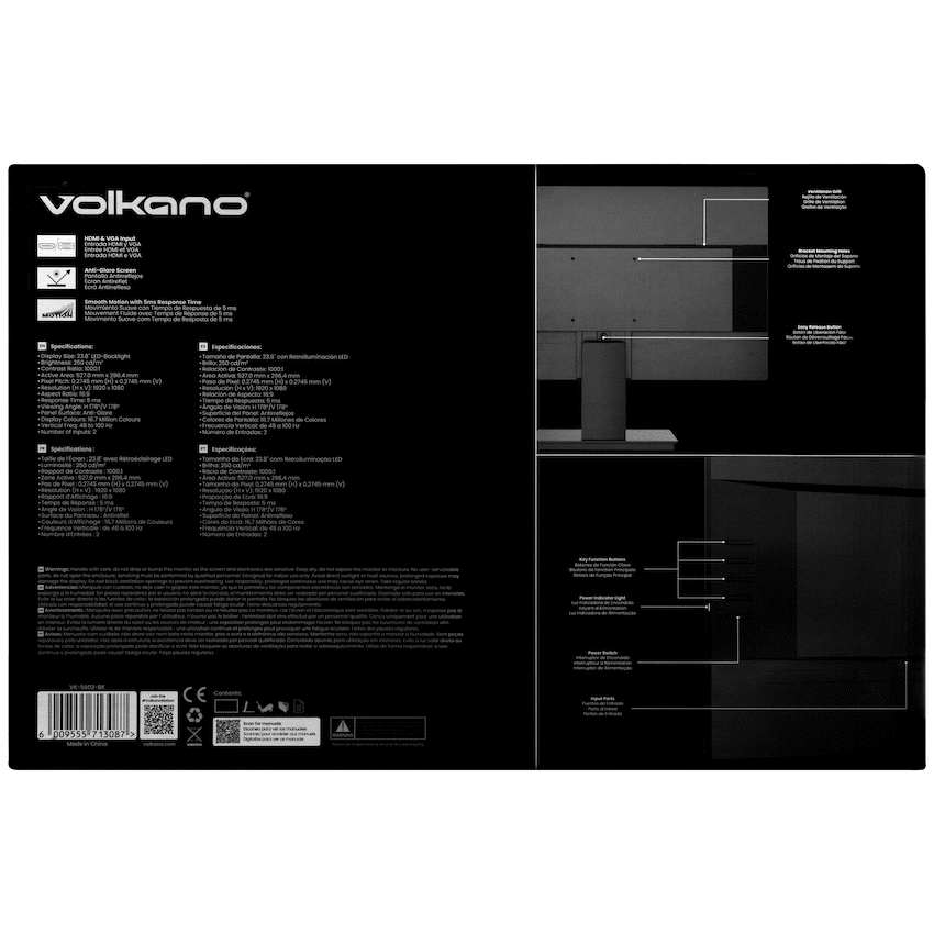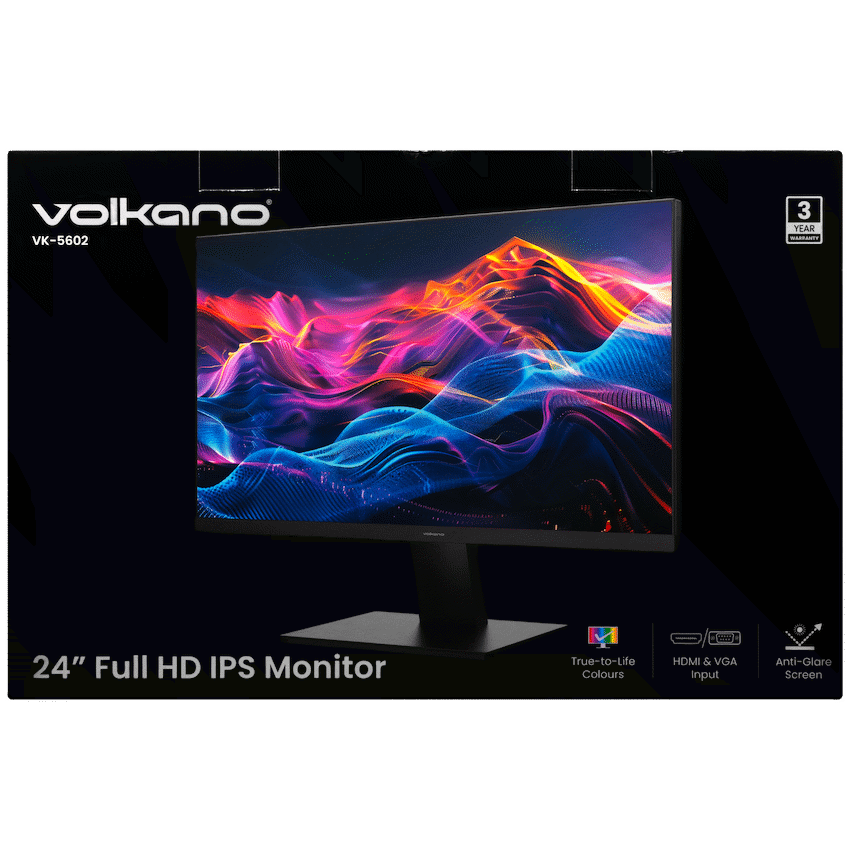 This Volkano 24-inch Full HD IPS Monitor offers a practical display choice for office or study. It features a 23.8-inch Full HD IPS panel with wide 178-degree viewing angles. HDMI 1.4 supports 100 Hz for smooth visuals, and a VGA port is included.