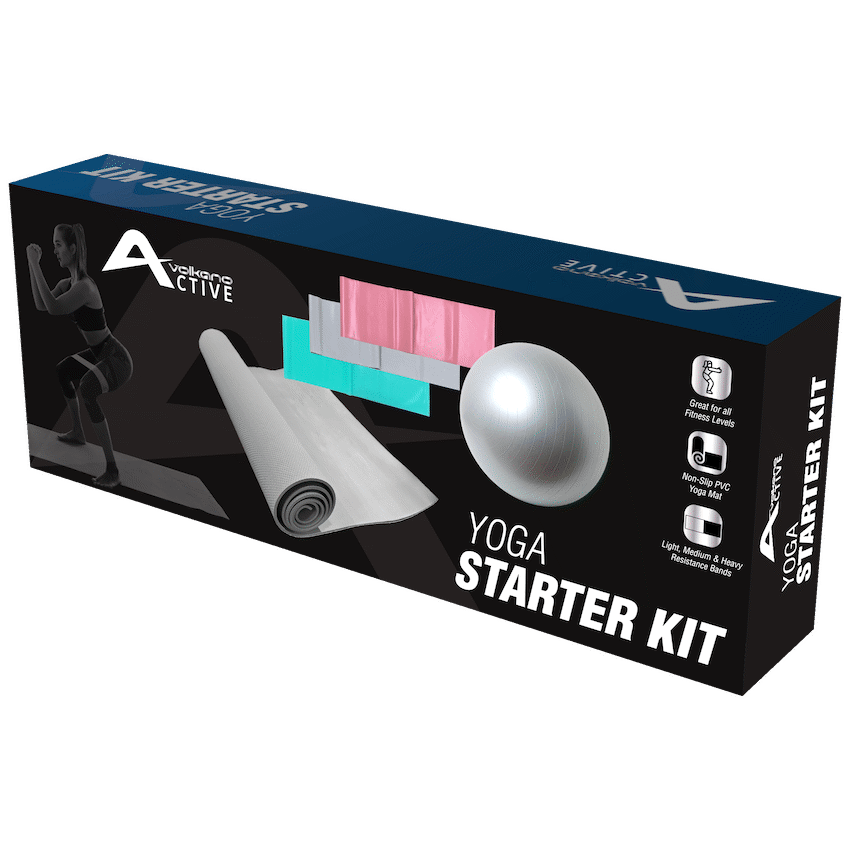 This Volkano Active Yoga Starter Kit helps you maintain an active lifestyle. It provides a durable 55 cm anti-burst gym ball and a 3 mm non-slip yoga mat for stability during exercises. Three resistance bands are also included in this practical fitness set from Volkano Active.