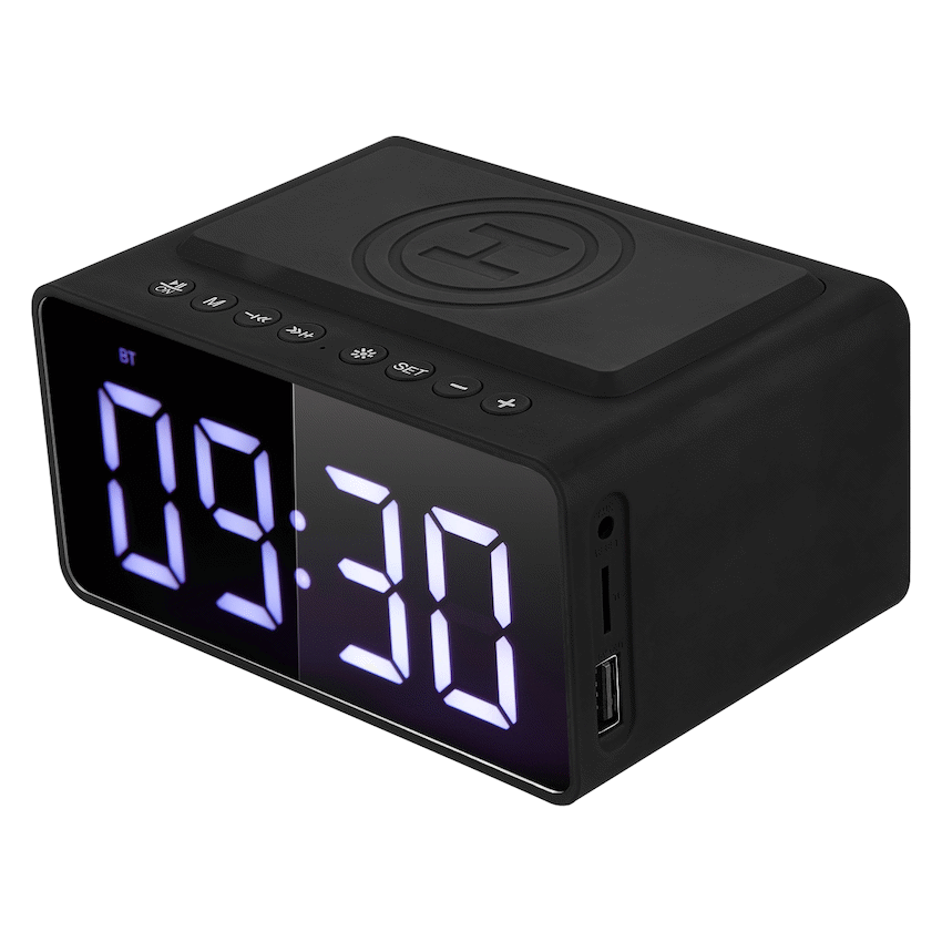 Volkano Awake Plus series Alarm Clock with Wireless Charging & Speaker – Black