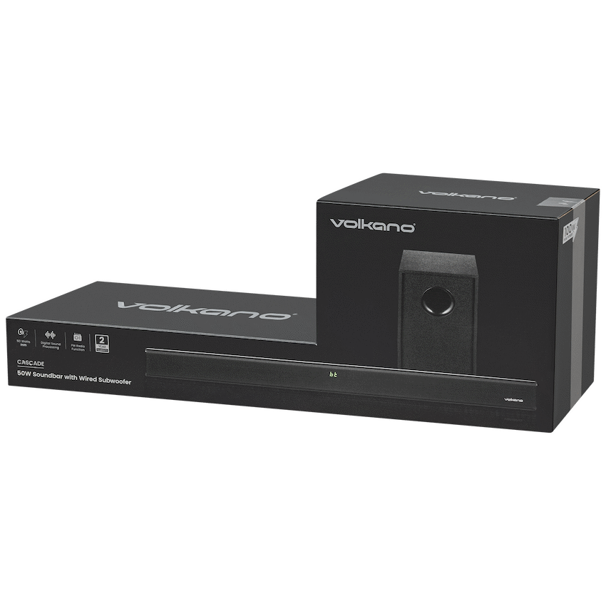 Volkano Cascade 50w Soundbar + Wired Subwoofer – Black