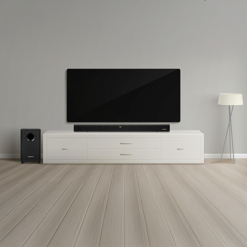 Enjoy clear, powerful sound with the Volkano Cascade 50w Soundbar and Wired Subwoofer. It provides 50W audio output and versatile input options, including Bluetooth and HDMI ARC, for easy device connection. This Volkano sound system makes your listening better.