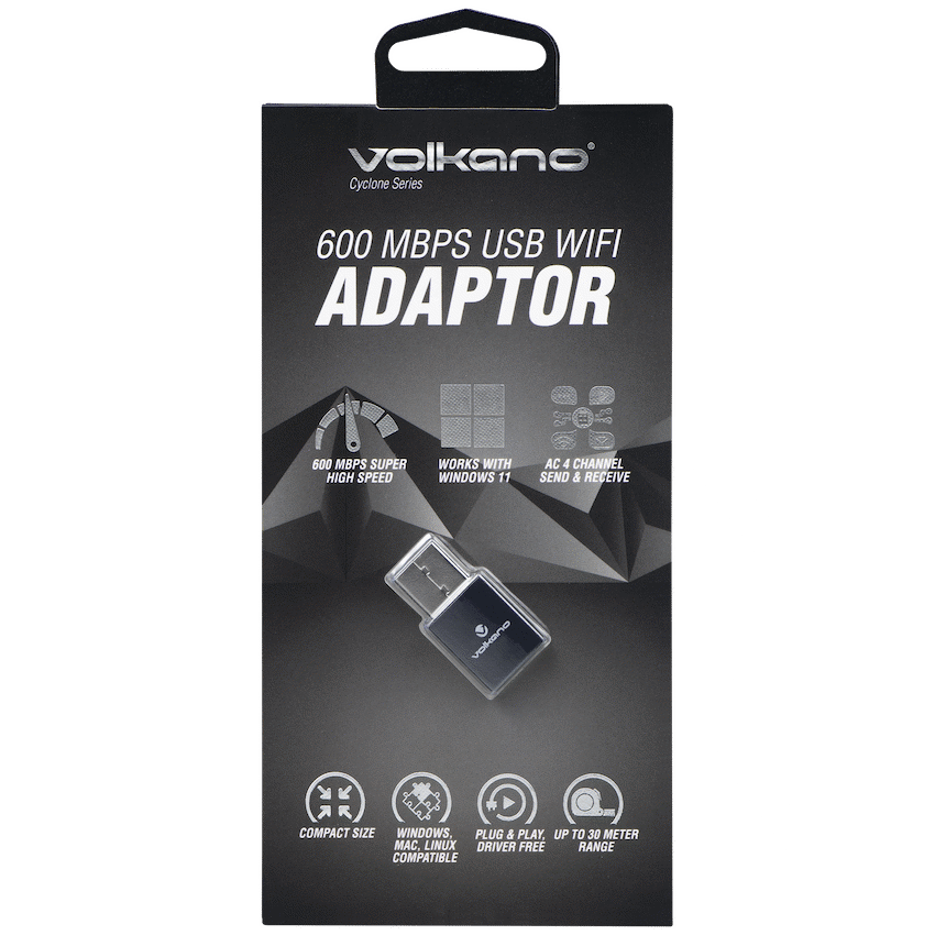 The Volkano Cyclone 600Mbps USB Wi-Fi Dongle provides quick wireless internet access. It connects simply to any USB port, giving laptops or desktop PCs Wi-Fi capability. This compact Volkano device offers dependable connectivity.