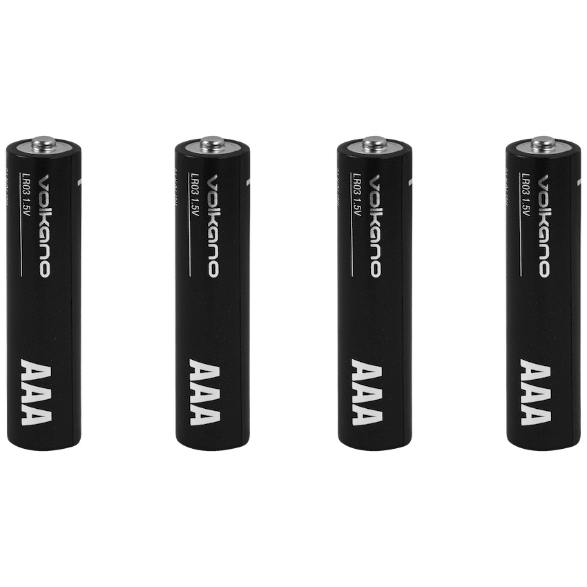 These AAA alkaline batteries provide lasting 1.5V power for your daily electronics. They resist leaks and give consistent performance for devices like remotes and toys. This convenient pack of four comes from the Volkano Extra Series.