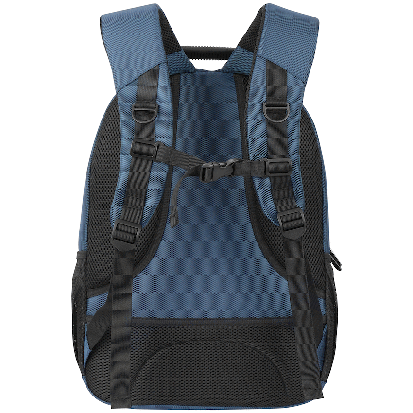 - Designed for comfort with adjustable padded shoulder straps, breathable back padding, and a top handle for easy carrying.